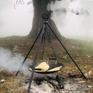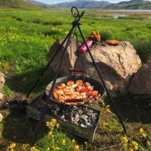 میتوانید قابلمه یا کتری خود را نیز به شکل راحتتری روی آتش قرار دهید. همچنین زنجیری به صورت سه رشته ای که در قسمت بالایی وجود دارد که کمک میکند تا به میزان دلخواه فاصلهی ظرف خود را روی آتش تنظیم کنید.