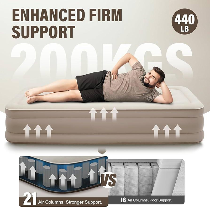 تشک برقی CLS با ابعاد 40×150×200 سانتیمتر پس از باد شدن، فضایی ایدهآل برای دو نفر فراهم میکند و حتی قابلیت استفاده برای سه نفر را نیز دارد. ارتفاع 40 سانتیمتری آن، خوابی نرم، راحت و کاملاً مشابه تخت واقعی را به شما هدیه میدهد.