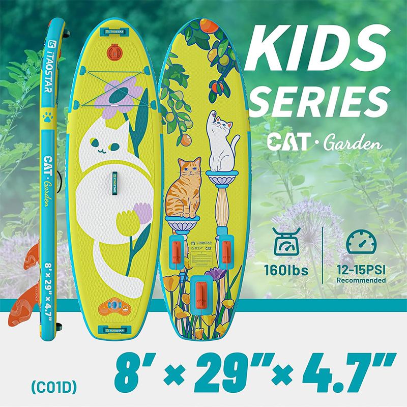پدل بورد بادی iTAOSTAR مدل KID CAT بلیط شما برای ماجراجویی است که لذت و آسایش را برای گذراندن زمان فوقالعاده روی آب ترکیب میکند. عرشه مقاوم و بدون لغزش آن، اوغات سرگرم کنندهای را برای کودکان و نوجوانان، برای استفاده در استخر، دریاچه ها و رودخانه ها و حتی ماهیگیری فراهم میکند.