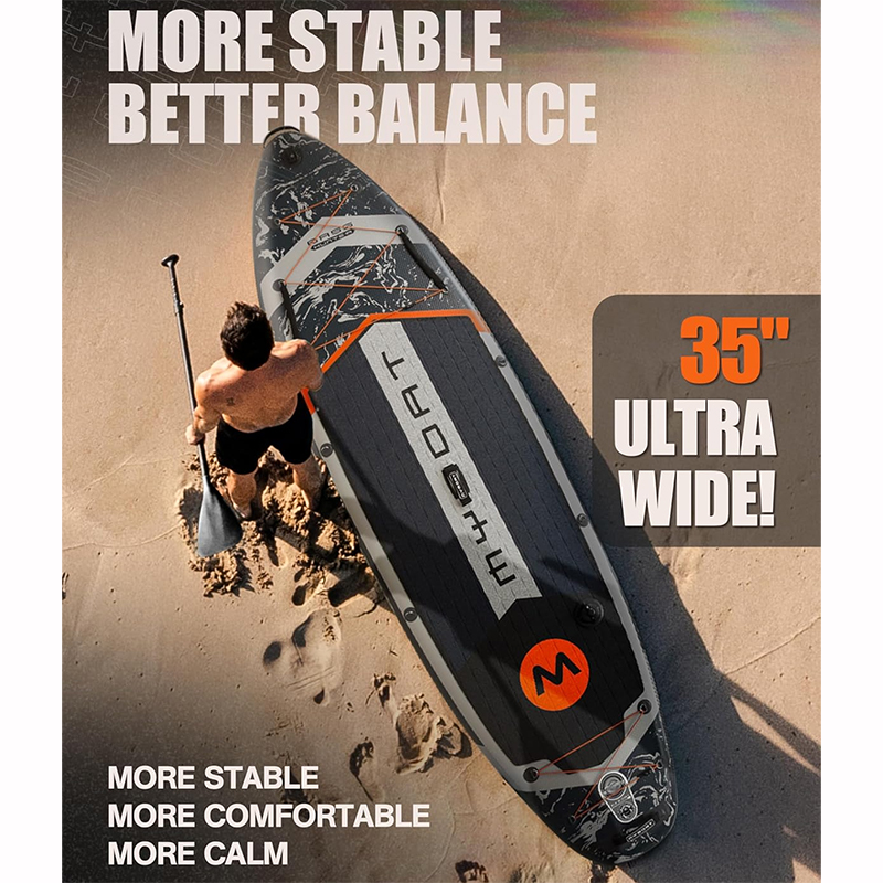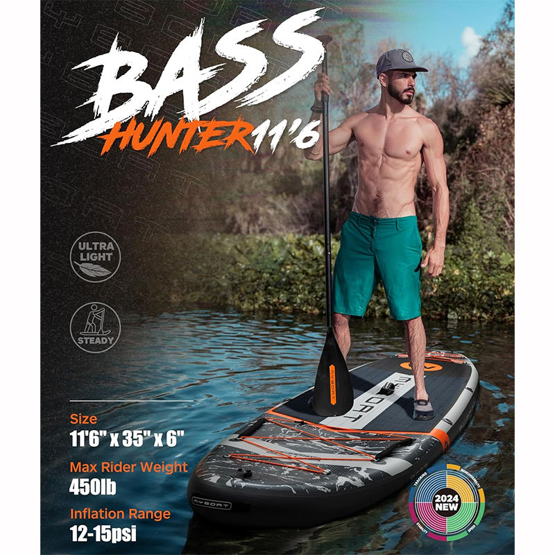 پدل بورد مای بوت طوسی مدل Bass Hunter 11’6″، به صورت عریض 89 سانتیمتر (35 اینچی) طراحی شده و به یکی از پایدارترین تخته پارویی موجود در بازار تبدیل شده است. این محصول گزینه مناسبی برای مبتدیان است که روی تخته SUP بایستند و تعادل برقرار کنند.