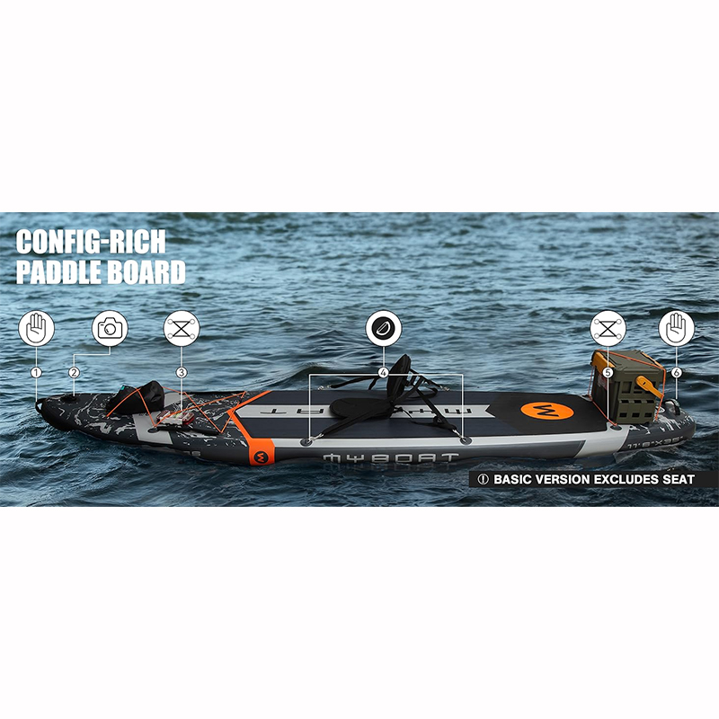 ظرفیت آن شامل دو نفر بزرگسال به همراه یک کودک یا حیوان خانگی است. به سبب این ویژگی گزینه بسیار مناسبی برای سفرها و تفریحات آبی به همراه خانواده است. بر روی پدل برد گیره نگه دارنده دوربین و کیف ضد آب تلفن همراه تعبیه شده است. حمل آن با کمک بند شانه ضدلغزش و سه دستگیره به صورت یک نفره یا دونفره بسیار آسان است.