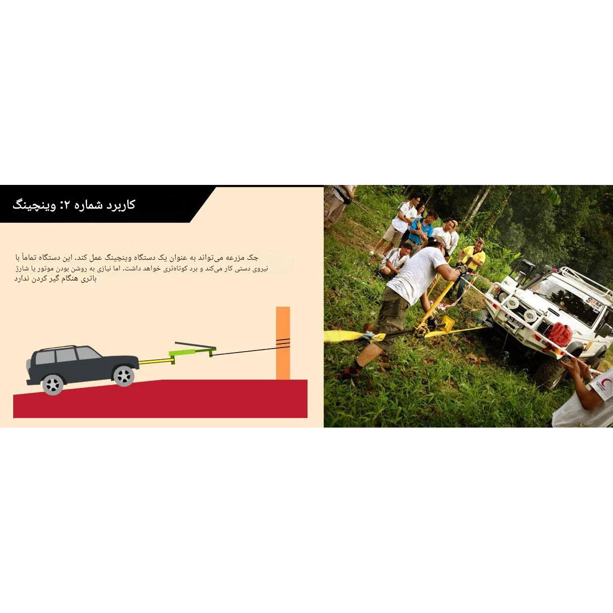 - کاربرد: بالا بردن خودرو، بیرون کشیدن از گل و شن، کشیدن یا فشردن قطعات، و حتی استفاده به عنوان گیرهی فشاری