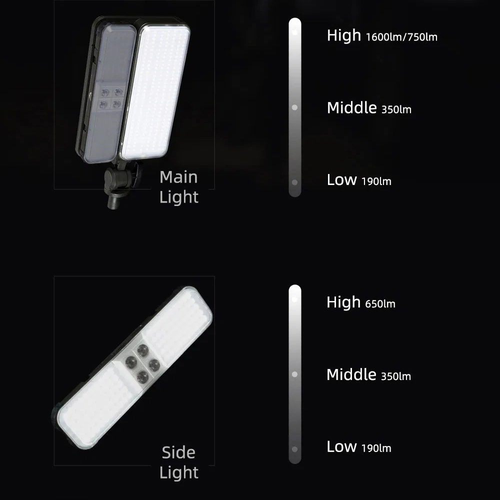 چراغ جانبی (Side Light): با باتری 3600mAh بین 1.5 تا 6 ساعت روشن میماند.