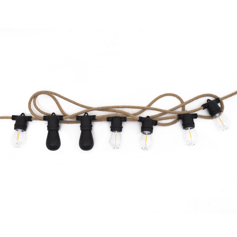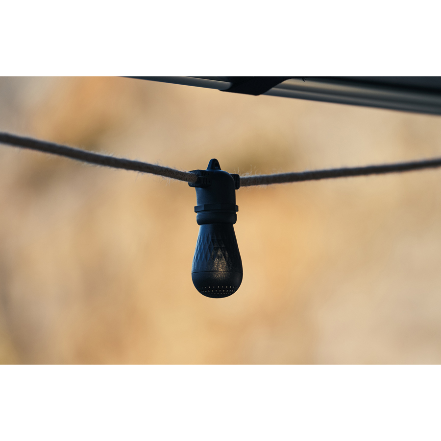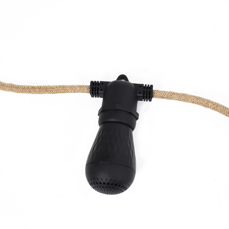 سیم این چراغ ریسه ای با طناب کنفی پیچیده شده است. چراغهای رشتهای هوشمند مجهز به اسپیکر، یکی از جذابترین و کاربردیترین محصولاتی هستند که در سالهای اخیر برای دکوراسیون فضای داخلی و بیرونی مورد توجه قرار گرفتهاند. محصول حاضر یک ست چراغ رشتهای ۵ متری است که با برخورداری از 8 لامپ نوری + 2 لامپ اسپیکردار تجربهای متفاوت از نورپردازی و پخش موسیقی را در اختیار شما قرار میدهد.